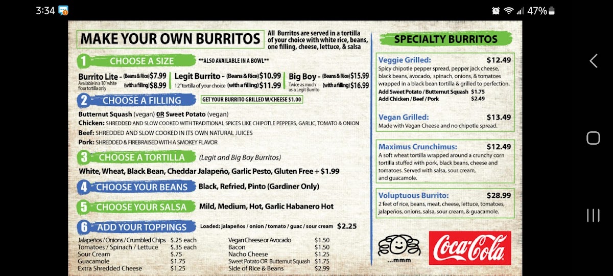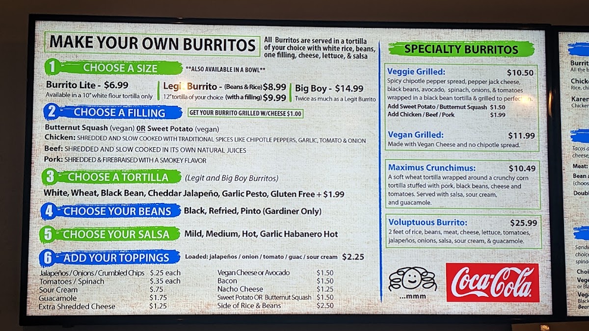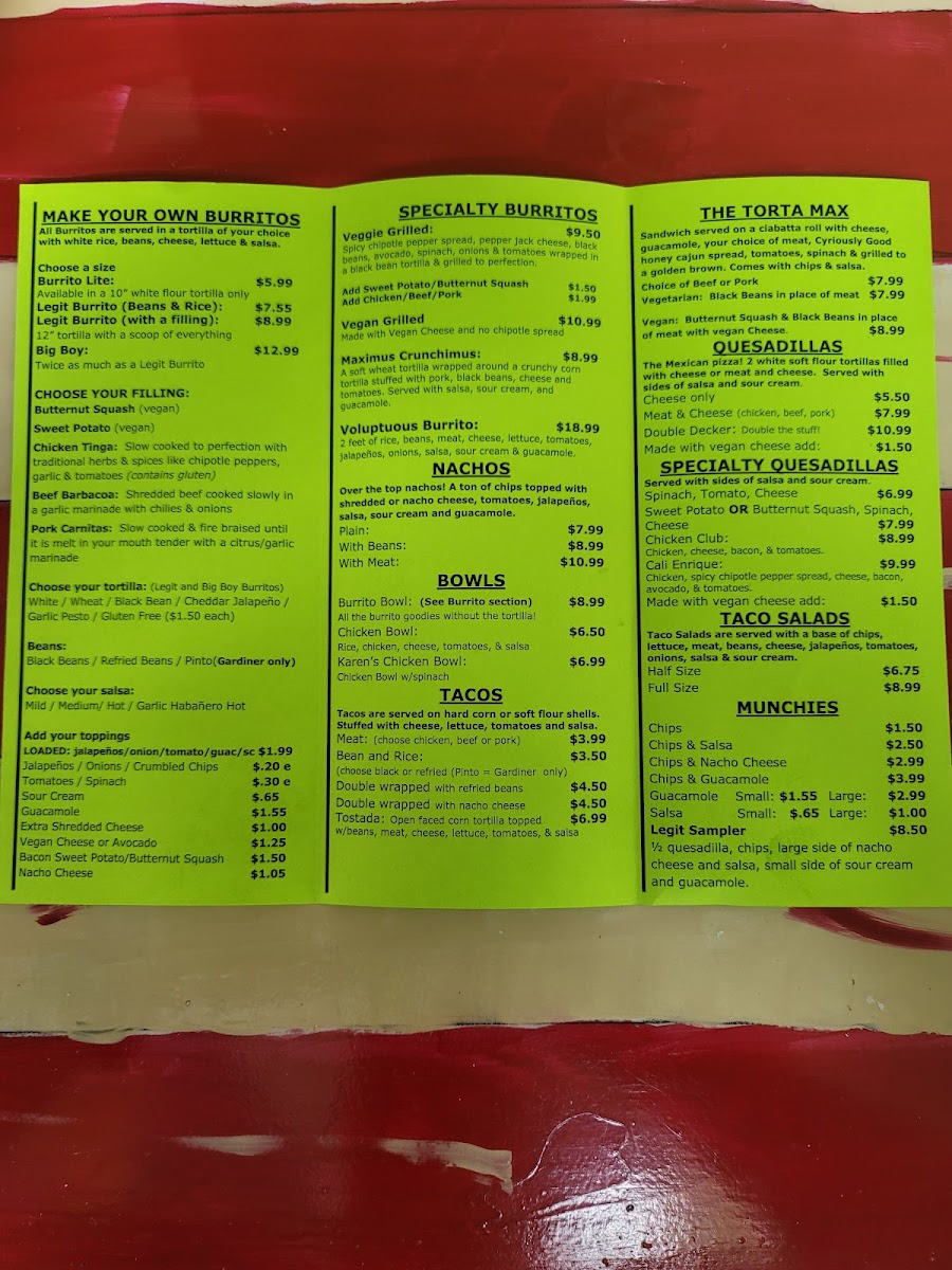 Lisa's Legit Burritos offers a straightforward and inviting menu that centers around hearty Mexican-inspired fare. You'll find a range of burritos, bowls, and tacos crafted to satisfy casual cravings or a relaxed meal out. The style is approachable, making it easy to stop in for a quick bite or linger while enjoying the friendly, comfortable atmosphere.